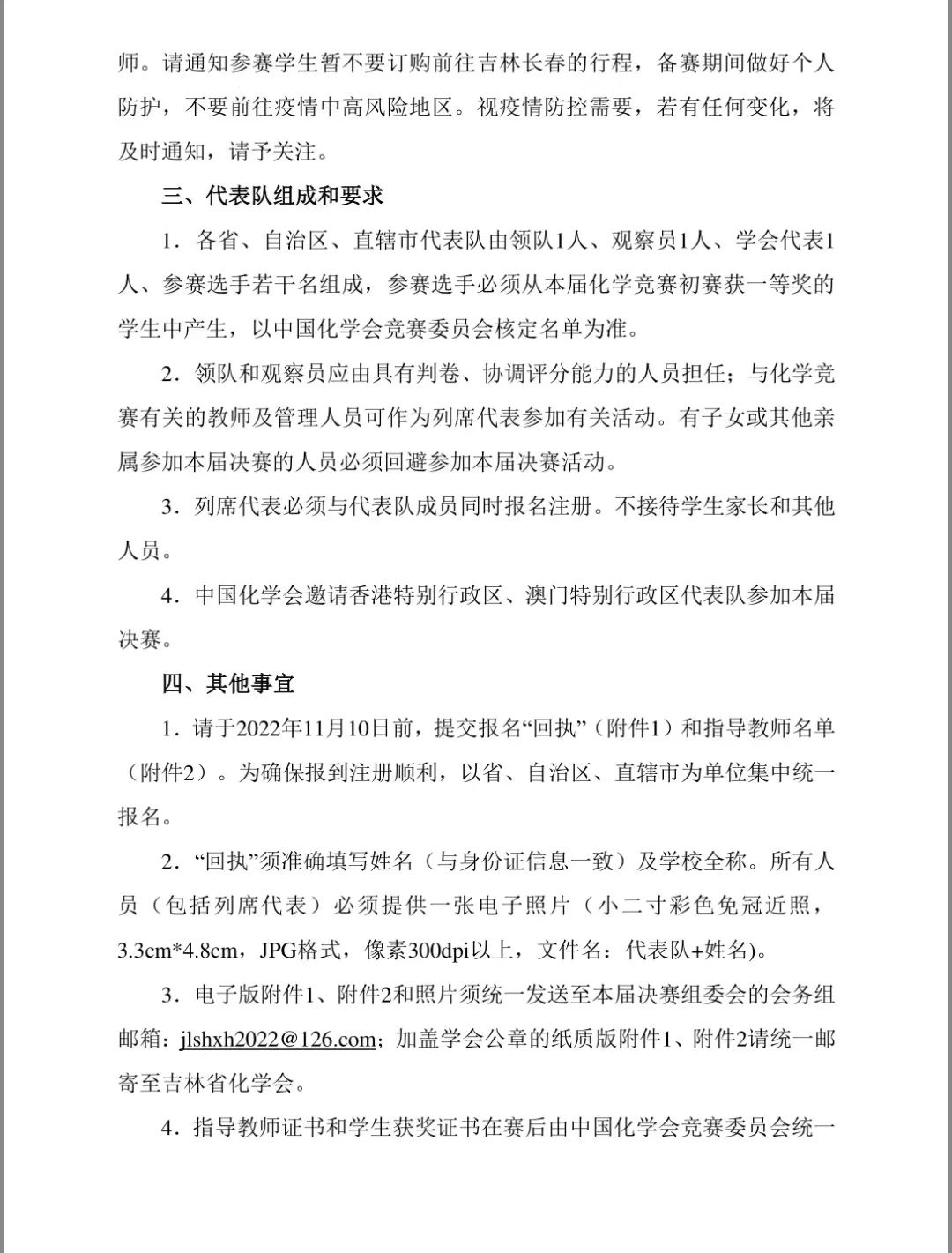 2022第36届中国化学奥林匹克(决赛)第一轮通知