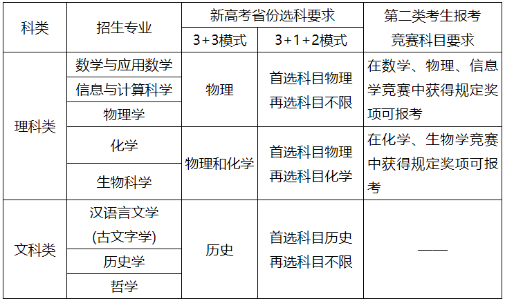 各省(区、市)符合2023年普通高等学校招生全国统一考试报名条件,具有强烈的专业兴趣,综合素质优秀,基础学科拔尖,并有志于将来从事相关领域科学技术工作的高中毕业生均可申请报名。申请报名考生分为以下两类: