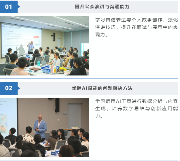 为赋能新一代学子自信面对未来挑战,昆山杜克大学“高中生冬令营|未来优势发展项目”,聚焦六大关键能力,助力学生在六天时间内实现从思维重塑到表达跃迁的全面突破。项目围绕公开演讲、数据分析与跨文化沟通等能力技巧展开,更融入“高中简历打造”与“职业路径探索”等实战工作坊,引导学生主动规划学业与未来,完成从自我认知到生涯规划的蜕变。