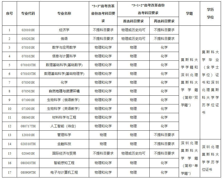 1.深圳北理莫斯科大学双学籍专业与莫斯科大学专业名称对照表