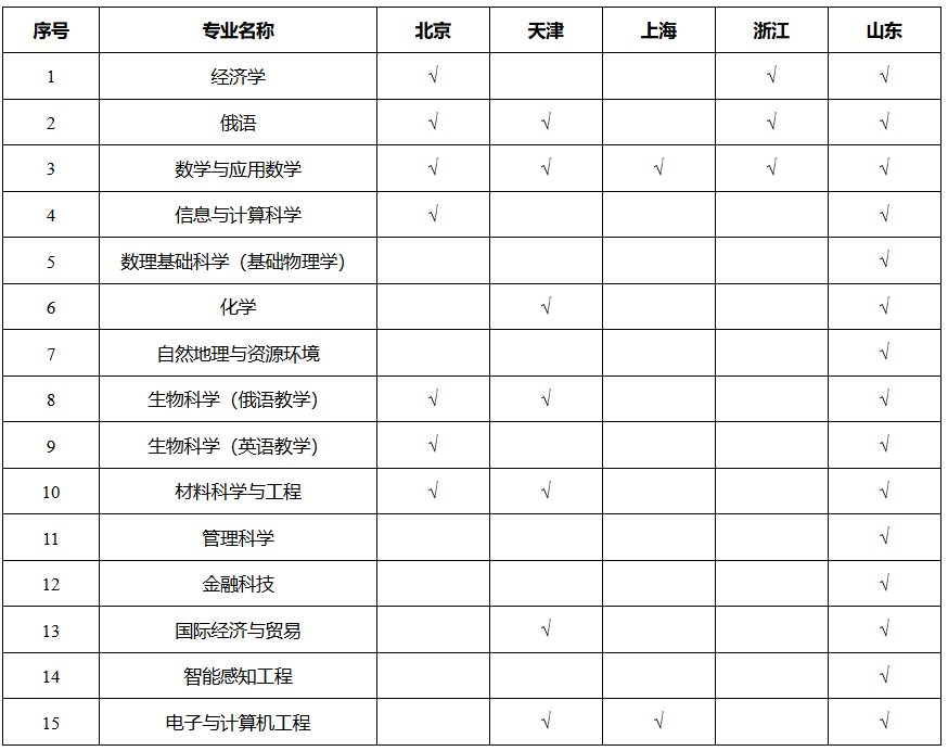 2.双学籍专业的主要教学语言为俄语,其中“生物科学(英语教学)”专业的主要教学语言为英语;单学籍专业中“国际经济与贸易”、“金融科技”专业主要教学语言为英语,其他专业的教学语言为汉语、英语。