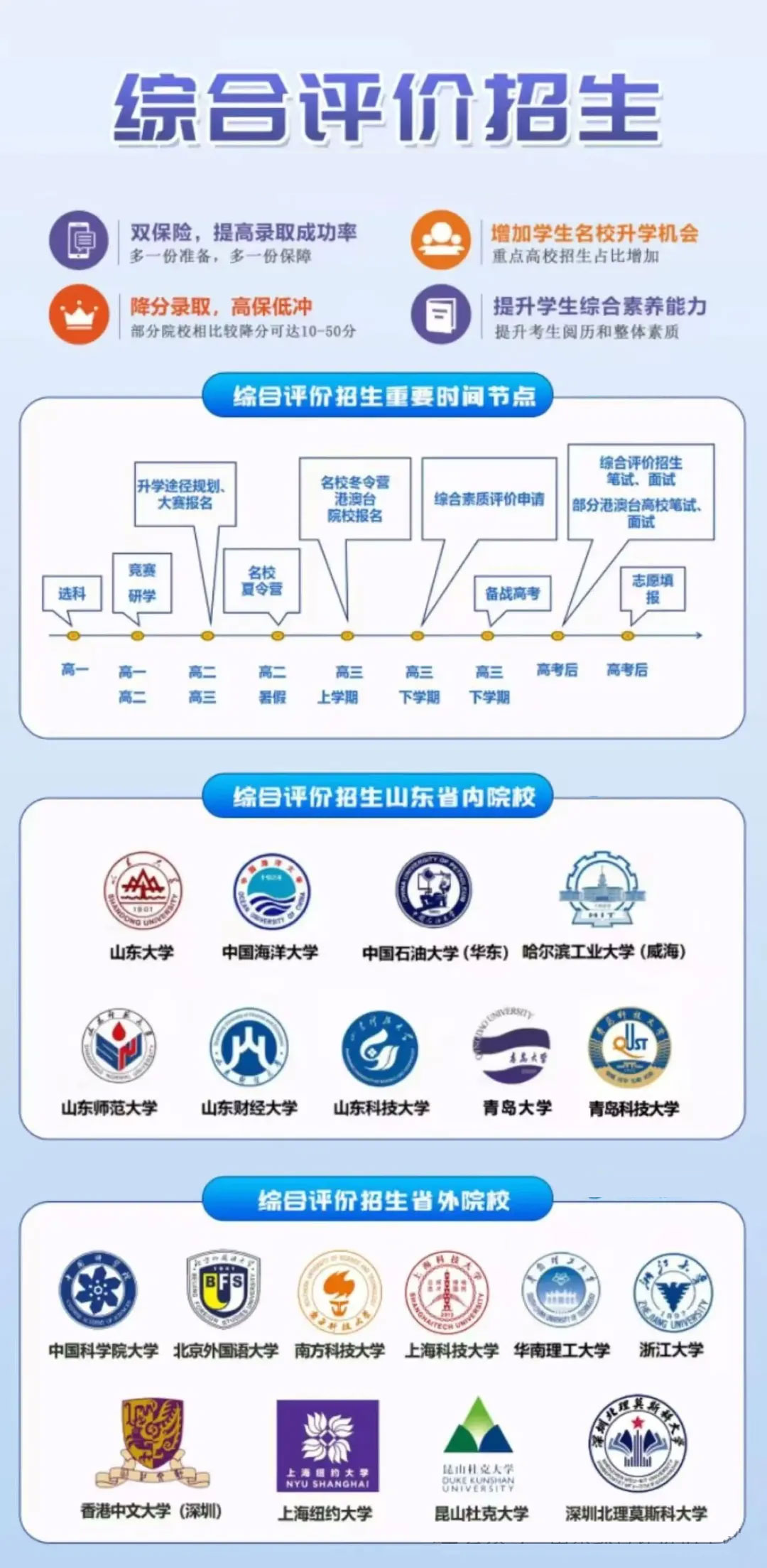 在高考竞争日益激烈的当下,本科综合评价招生为广大考生开辟了一条通往理想高校的新路径。对于山东的准高一、高二、高三学生而言,了解并提前规划综合评价招生相关事宜,将有助于在未来的高考中抢占先机。本文将为不同年级的学生提供针对性的准备建议。