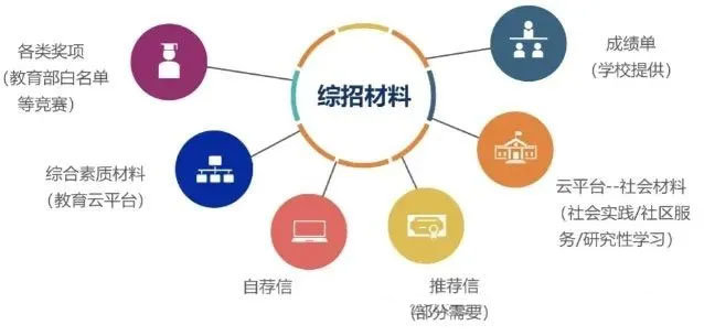 综合评价招生报名材料通常包括报名申请表、身份证、个人免冠照片、高中阶段文化课成绩、高中学业水平测试成绩、自荐信 / 个人陈述、推荐信、高中阶段获奖证书及证明材料、高中生综合素质评价档案等。