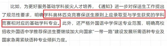 保送生:明确保送生必须经过考核,规范奥赛保送专业范围,严格外国语中学保送专业范围。